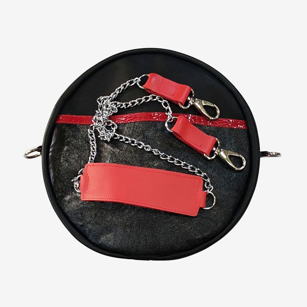 • It has a leather strap with chain.